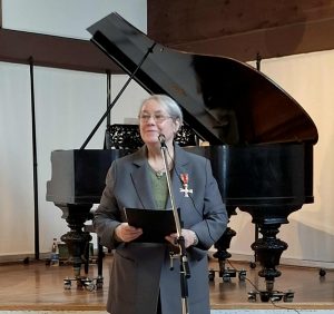 Bundespräsident Frank-Walter Steinmeier unterzeichnete die Urkunde zur Verleihung des Bundesverdienstkreuzes am Band bereits am 13. Juni 2025. Jetzt wurde AGA-Mitglied Tessa Hofmann der Orden von einer Staatssekretärin der Berliner Senatsverwaltung, zuständig für Kultur und Zusammenhalt, überreicht. Zahlreiche Freundinnen und Freunde, Unterstützer:innen und Wegbegleiter:innen der Geehrten waren zu der Zeremonie erschienen und würdigten in ihren Ansprachen die Verdienste T. Hofmanns. Die Gesellschaft für bedrohte Völker, deren Mitglied Hofmann seit 1979 ist, gratulierte ihr online mit dieser Pressemitteilung: